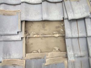 和瓦の場合、一部の瓦を剥がし、下の野地板の状況も確認し写真撮影します。